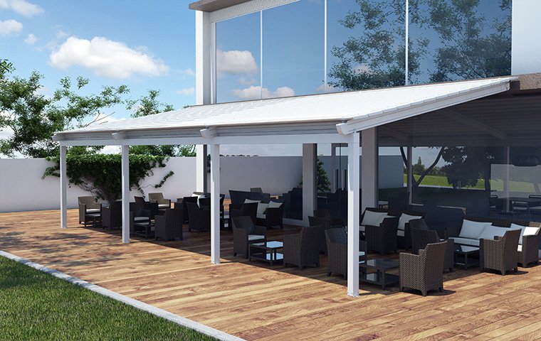 Πτυσσόμενη και ανοιγοκλειόμενη πέργκολα οροφής, αποκλειστικά σχεδιασμένη από τη Metaform.
